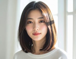 Firefly_30代の日本人女性、丸顔、正面向き、サラサラのストレートヘア、耳掛けショートボブ、内巻きでまとまっている、清潔感のあるナチュラルな表情、美容-2